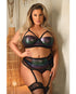 Curve Cassidy Metallic Foil Bra, Garter Belt & Panty Black