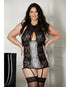 Lace Halter Neck & Snake Skin Print Gartered Chemise Black
