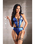 Play House Arrest Cut-out Halter Teddy W/removable Leg Garters & Handcuffs Blue