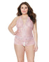 Crystal Pink Halter Crotchless Teddy Pink/Silver OS/XL