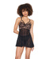 Lace and Mesh Underwire Babydoll w/Thong - Black/Rose Gold